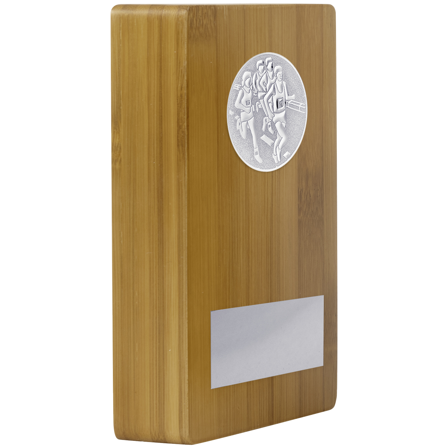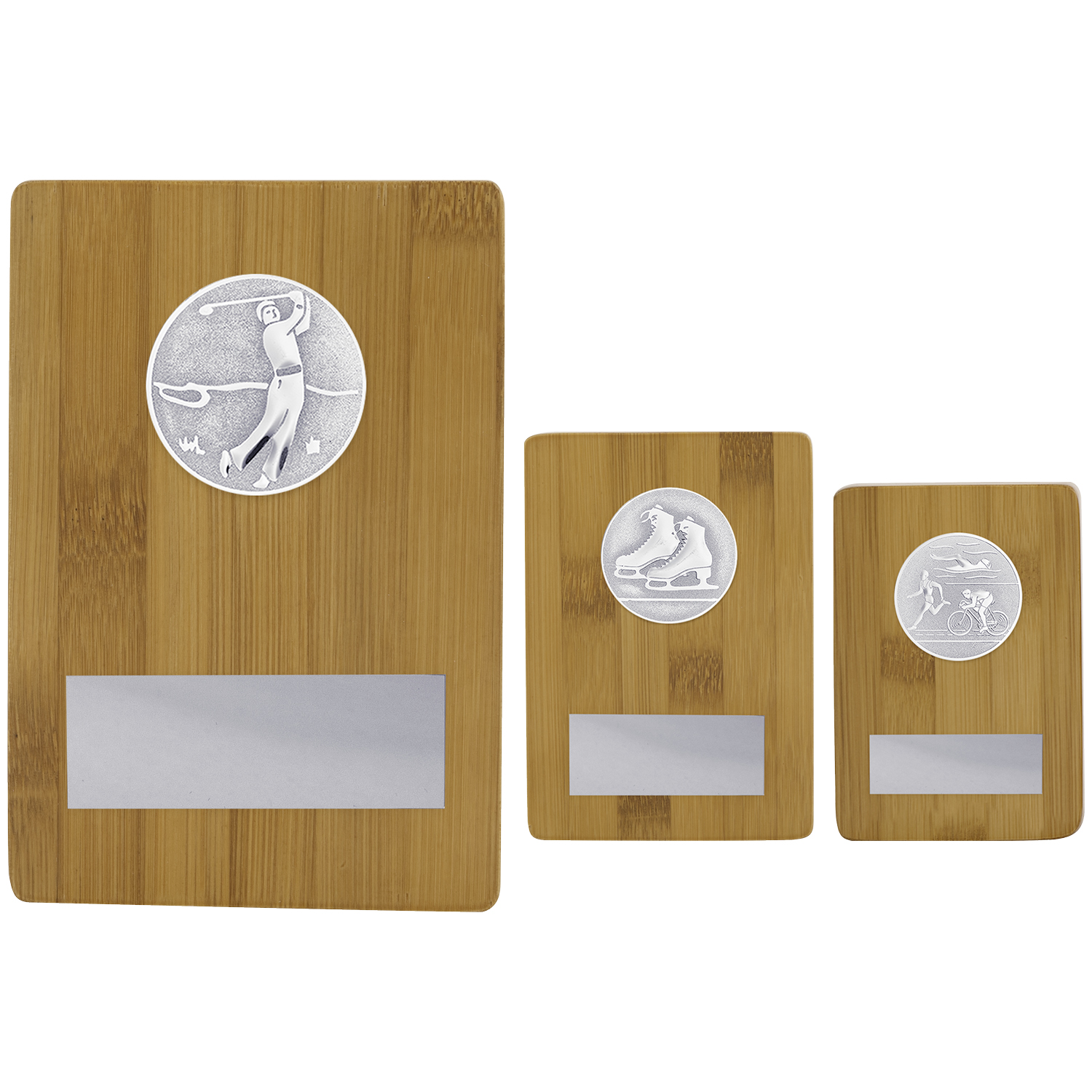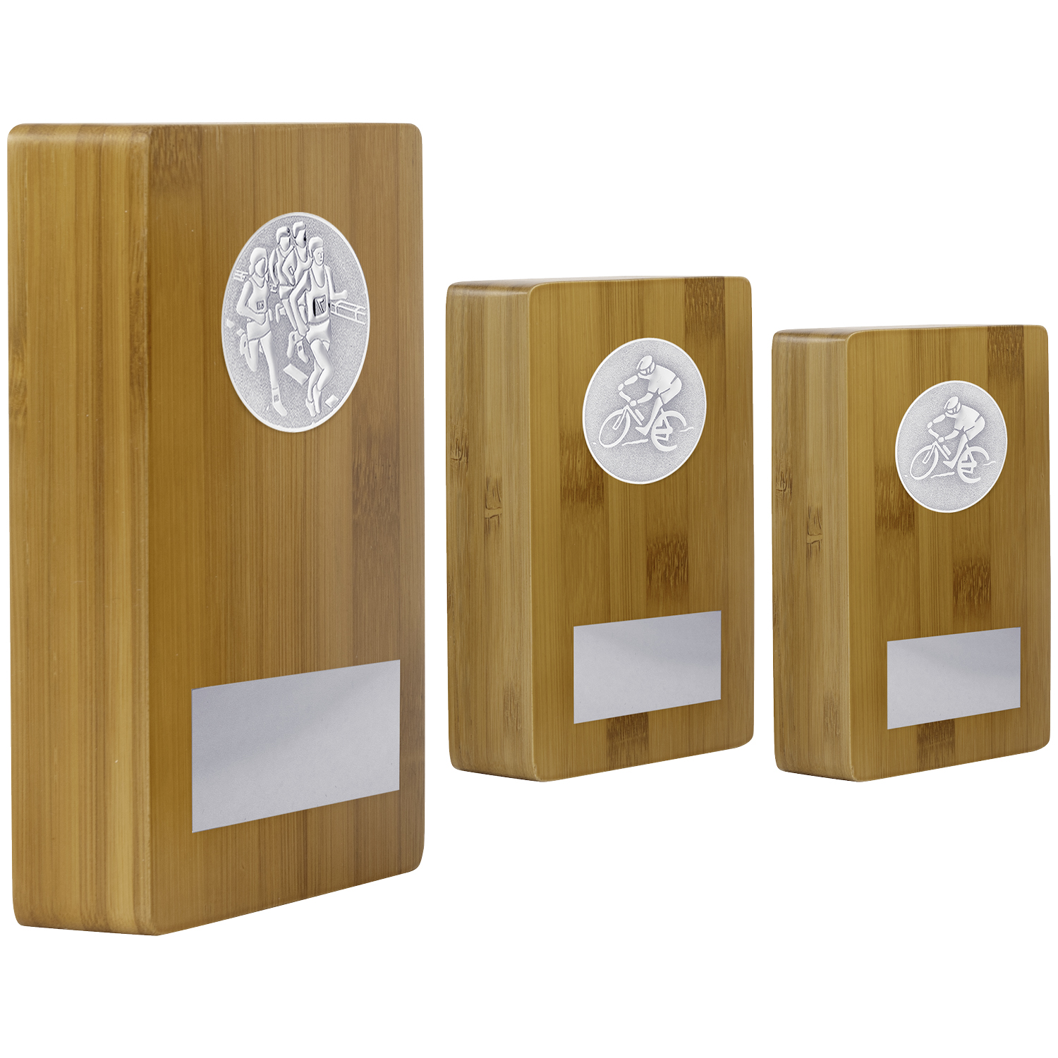 Hochwertiges Holz mit abgerundeten Kanten in 3 Größen (13cm -17cm). Die Oberfläche ist glatt verarbeitet und zeigt eine gleichmäßige, vertikale Holzmaserung in warmen Naturtönen. Durch die klare Form und das reduzierte Design wirkt die Trophäe modern und hochwertig. Emblem nach Wahl und Gravur auf Metallschild im Preis enthalten. Ohne Angabe wird Emblem und Gravurschild in silber geliefert, ist aber auch mit goldenen Elementen möglich.