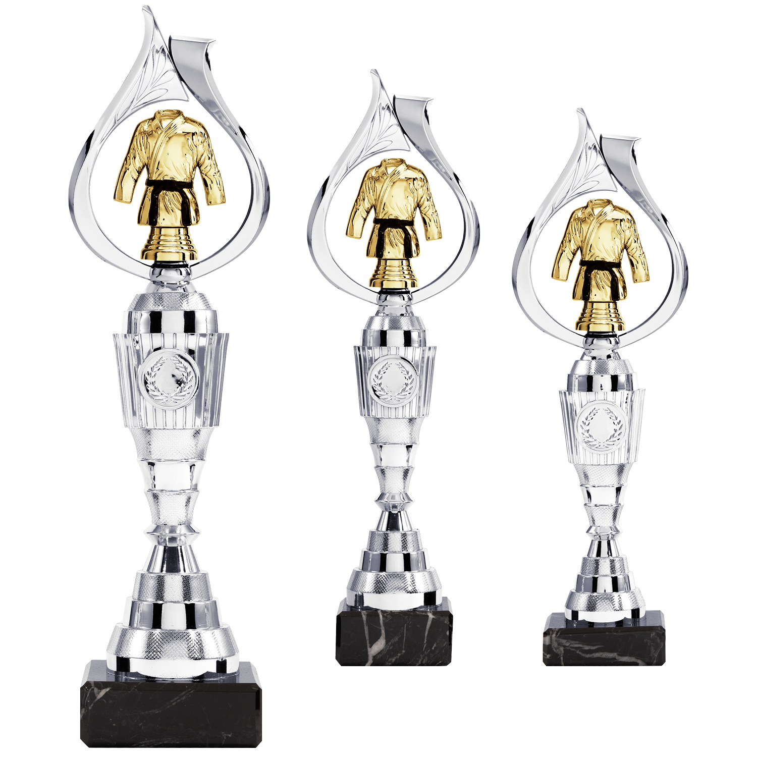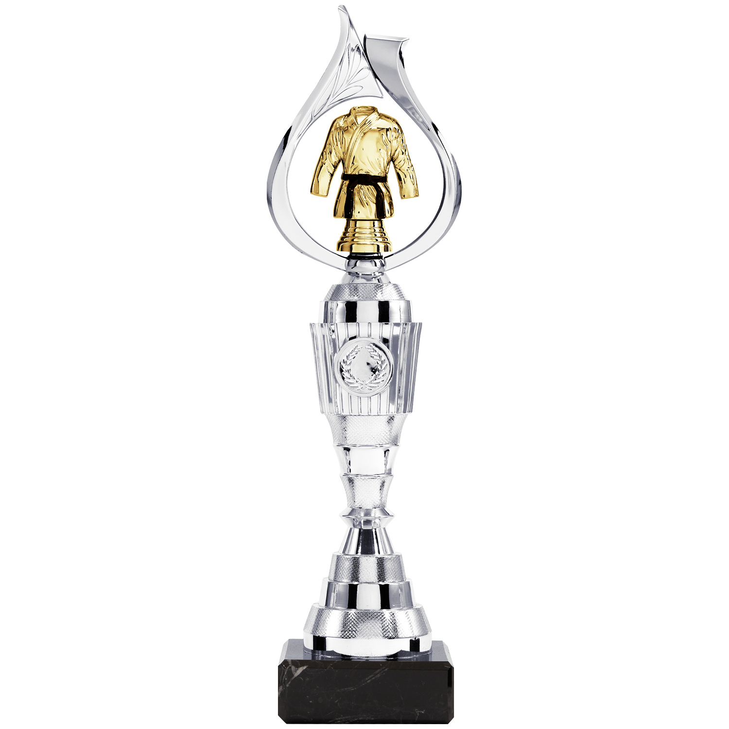 Schöner Kunststoff-Aufsteller in Silber mit einer Kampfsportfigur in Gold, als Mittelpunkt dieses Pokals. Dieser außergewöhnliche Aufsteller ist in mehreren Größen erhältlich. Besonders geeignet um Ihre Sieger auszuzeichnen. Gravur auf Metallschild am Sockel bereits im Preis enthalten.